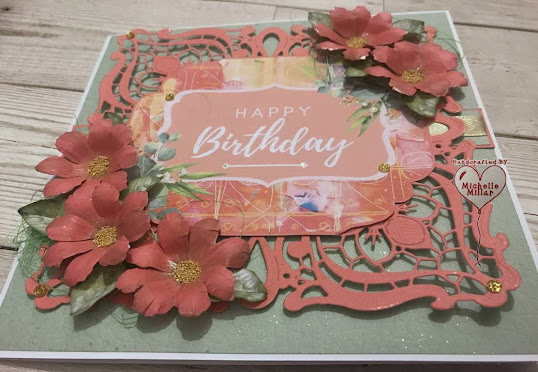 I loved the large beautiful white gerberas on this Graceful Gerberas kit, they really jump out of the papers and topper in this kit by Opulence by Design Crafts. There is a selection of toppers and sentiments along with a set of pink/cream backing/collage papers for you to choose from.